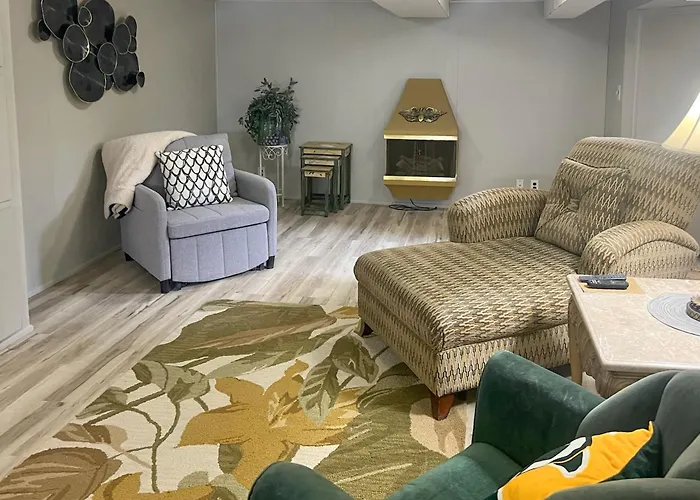 The Green Bay villa is nestled in the Ashwaubenon district of Green Bay, nearly a 10-minute drive from John Muir Park. Green Bay Botanical Garden is around 10 minutes away by car and Austin Straubel International airport is 10 km from the accommodation.